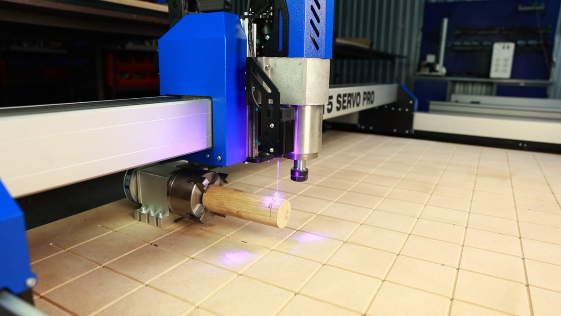 - Расширенные возможности обработки. В комплекте — 4‑я поворотная ось для работы с цилиндрическими заготовками (максимальный диаметр 80 мм).