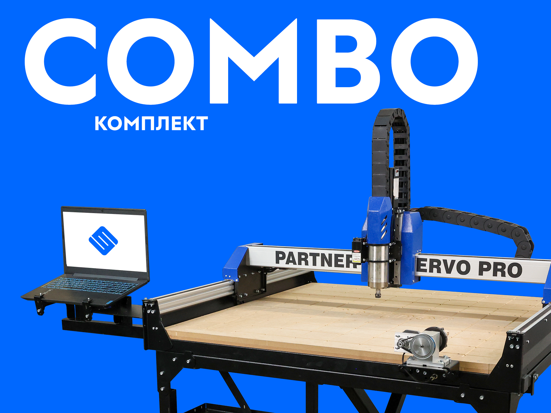 Combo Partner 800 SERVO PRO — это флагманская комплектация обновлённой линейки PARTNER, созданная для мастеров, которым нужна максимальная производительность, стабильность и точность без перехода на промышленное оборудование. С рабочим полем 800×800×89 мм и серводвигателями с обратной связью по всем осям, станок обеспечивает ювелирную повторяемость и высокую скорость обработки даже при интенсивной работе.