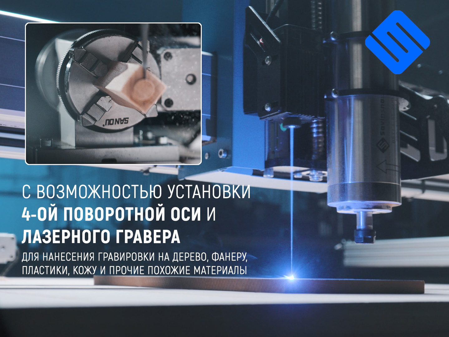 ✅Поддержка лазерного гравера (2,5–80 Вт) — для гравировки по дереву, коже, бумаге✅Подключение поворотной оси — обработка цилиндрических изделий фрезой или лазером
