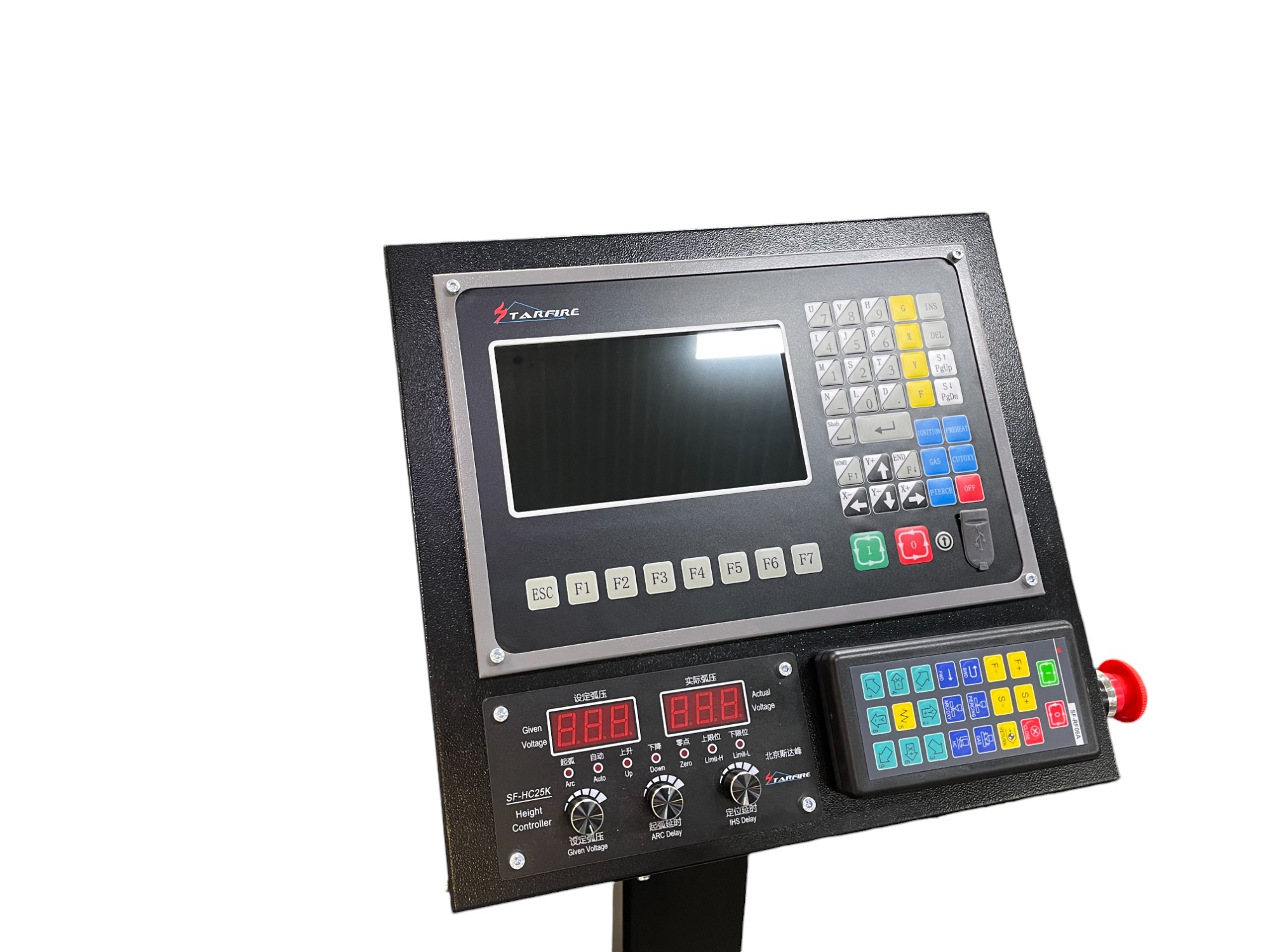 Пульт для дистанционного управления плазменным станком — это устройство, предназначенное для удаленного управления основными функциями станка, таким как перемещение осей, запуск и остановка плазменной резки, регулировка параметров работы и другие важные задачи. Этот пульт работает на радиочастотной технологии, что обеспечивает стабильное управление на расстоянии, без необходимости прямой видимости между пультом и станком.