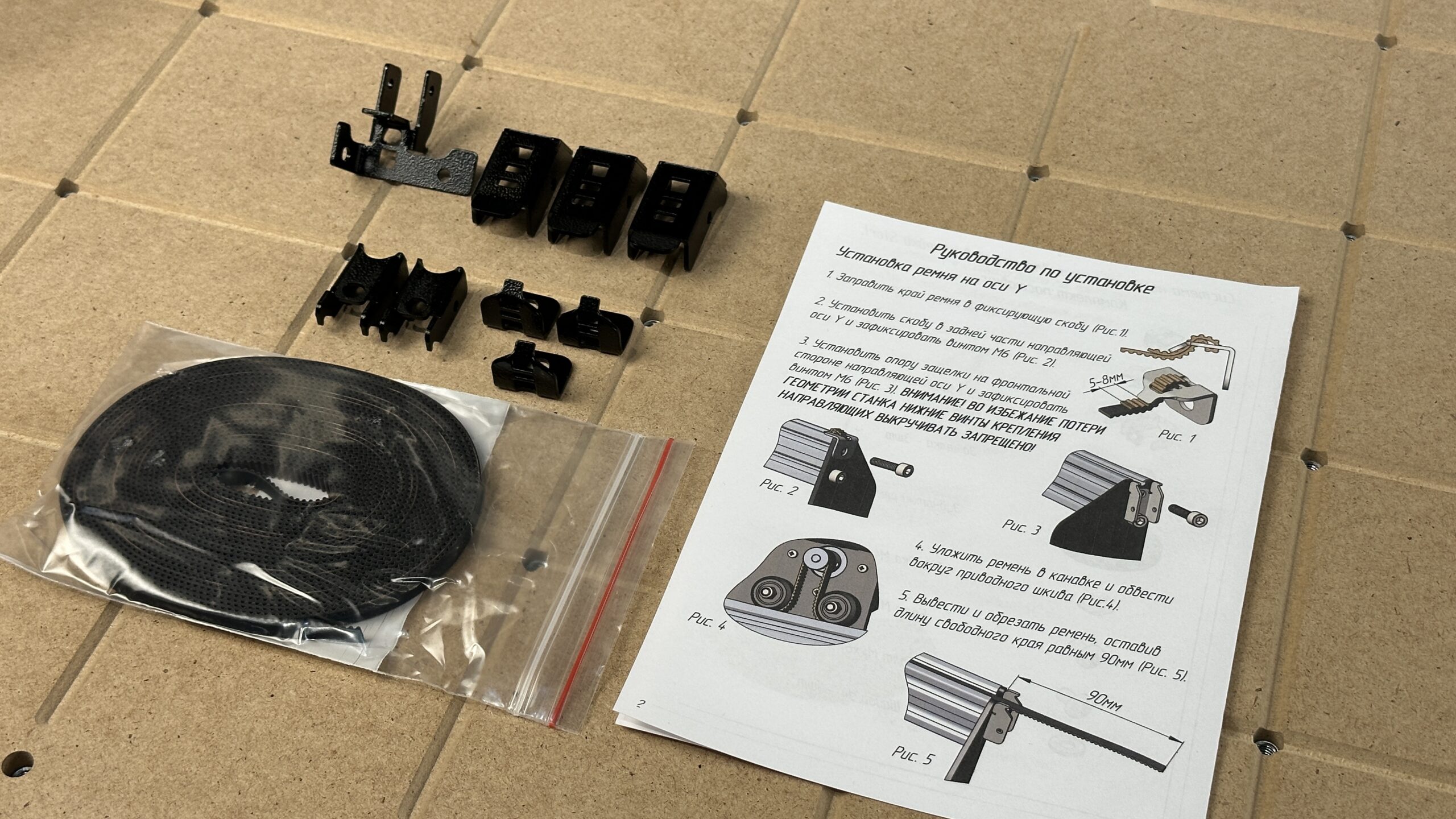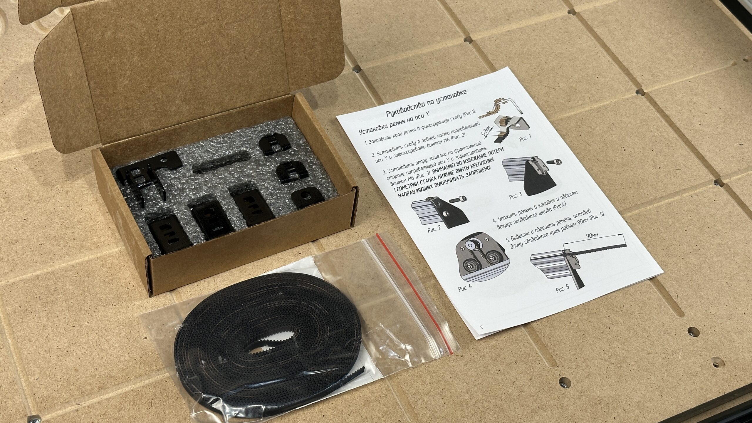 Комплект включает в себя натяжители на три оси, а также армированный зубчатый ремень длиной 5.5 м