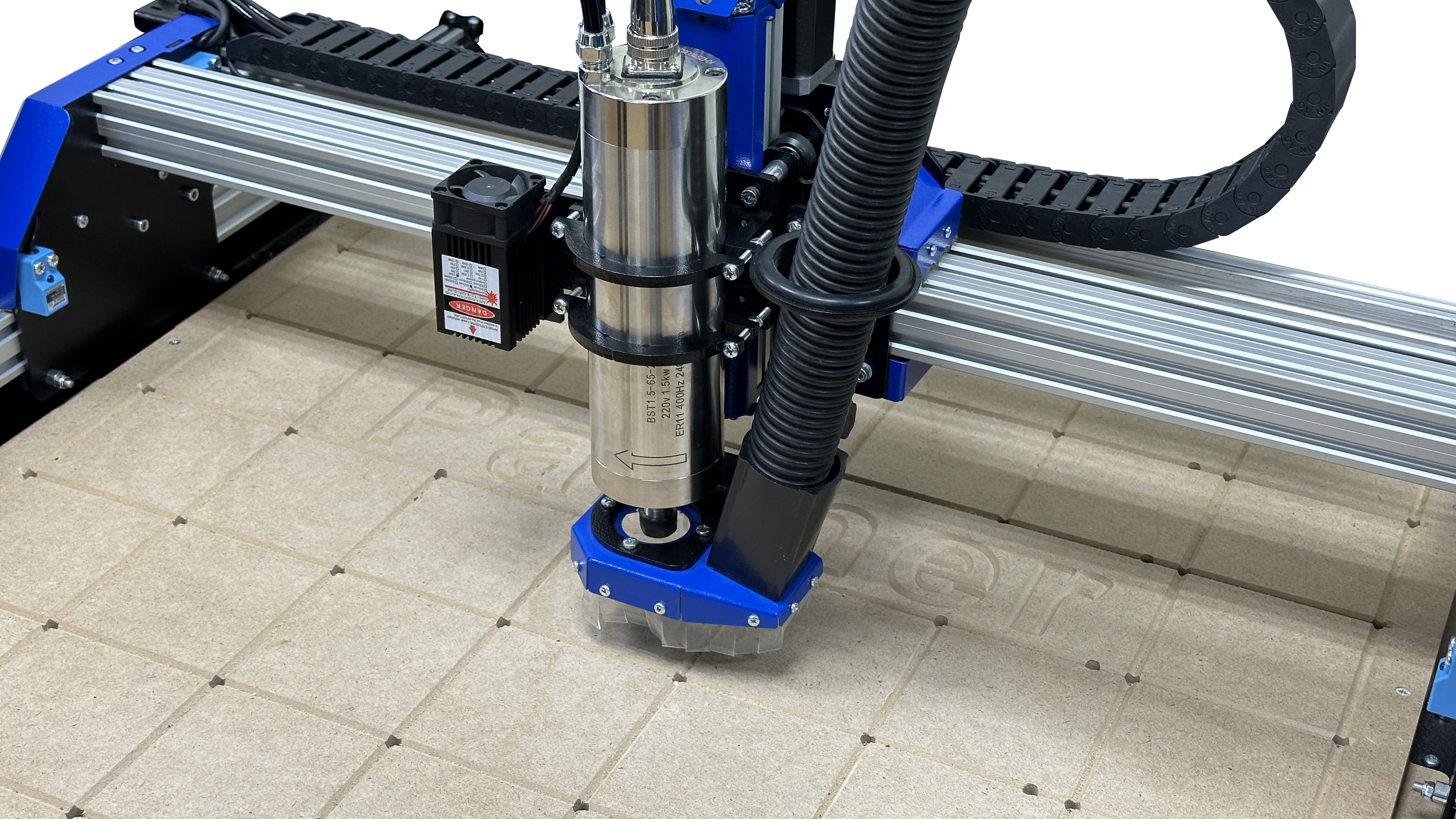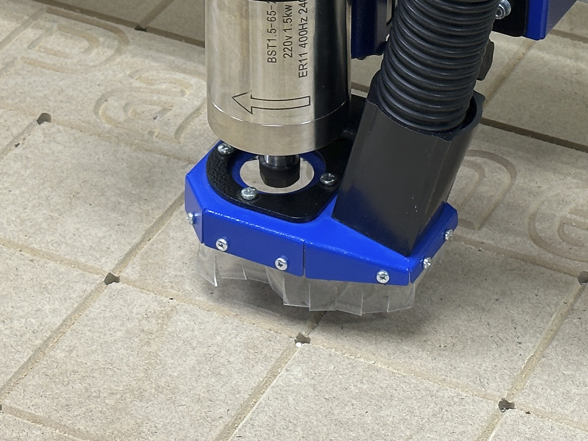 Насадка на шпиндель – является одним из основных элементов системы пылеудаления (аспирации). Она предназначена для отвода пыли и опилок из рабочей области станка. Пыль и опилки образующиеся во время выполнения обработки, могут оседать на шпинделе, закрывать область фрезеровки, засоряют рабочую поверхность станка и помещение. Из-за этого мастеру становится сложнее контролировать процесс обработки. Кроме того, проникновение мусора в рабочие узлы оборудования повышает вероятность их преждевременного износа и поломки. Не стоит забывать также о том, что пыль и опилки вредны для дыхательных органов. Со всем этим помогает справиться система аспирации для станка с ЧПУ. Процедура аспирации становится неотъемлемой частью технологического процесса.