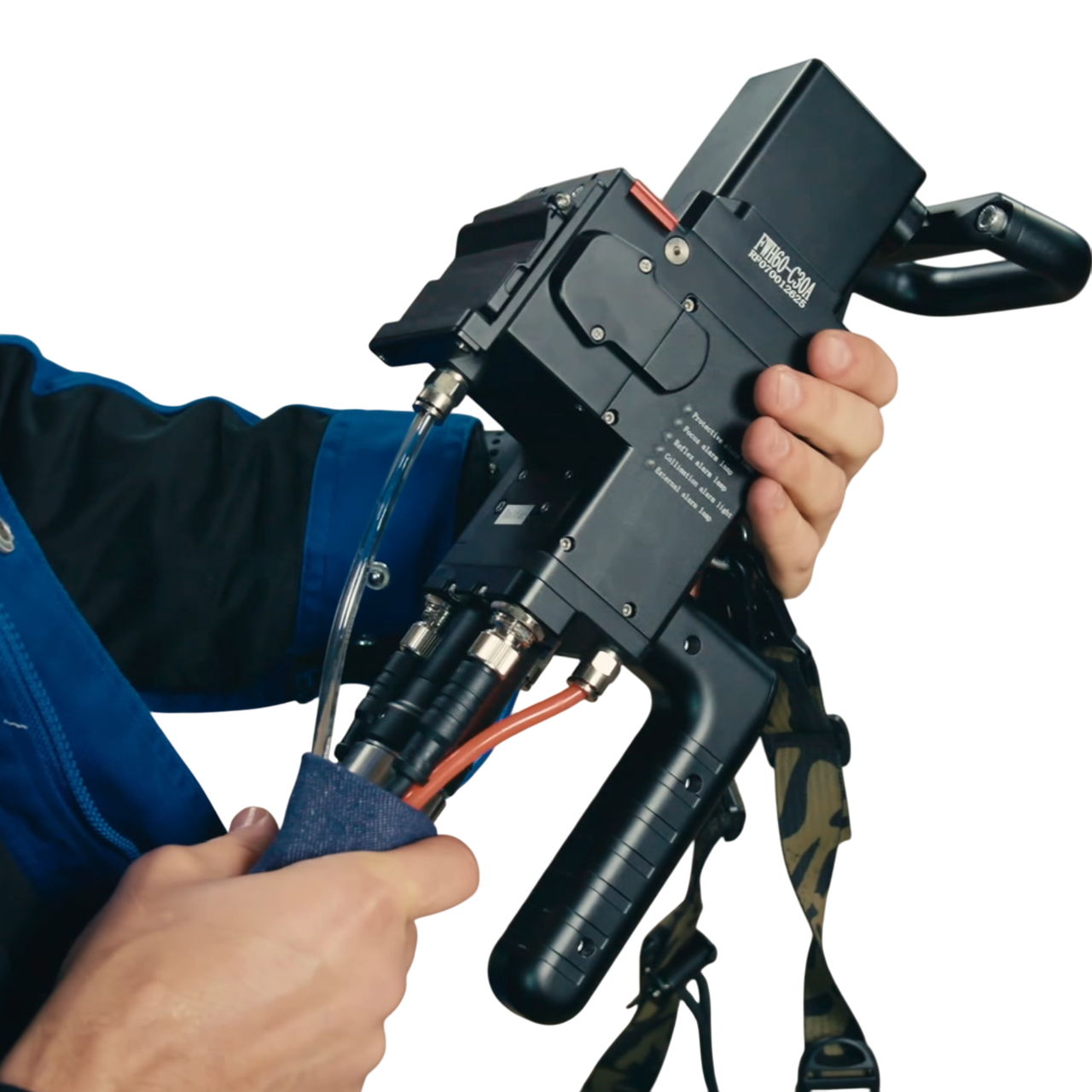 -6000 Вт мощности — Raycus RFL-C6000S-CE (промышленный волоконный источник)-20-метровый пистолет Relfar FWH60-C30A — свобода перемещения по цеху, удобный захват, воздушное охлаждение сопла