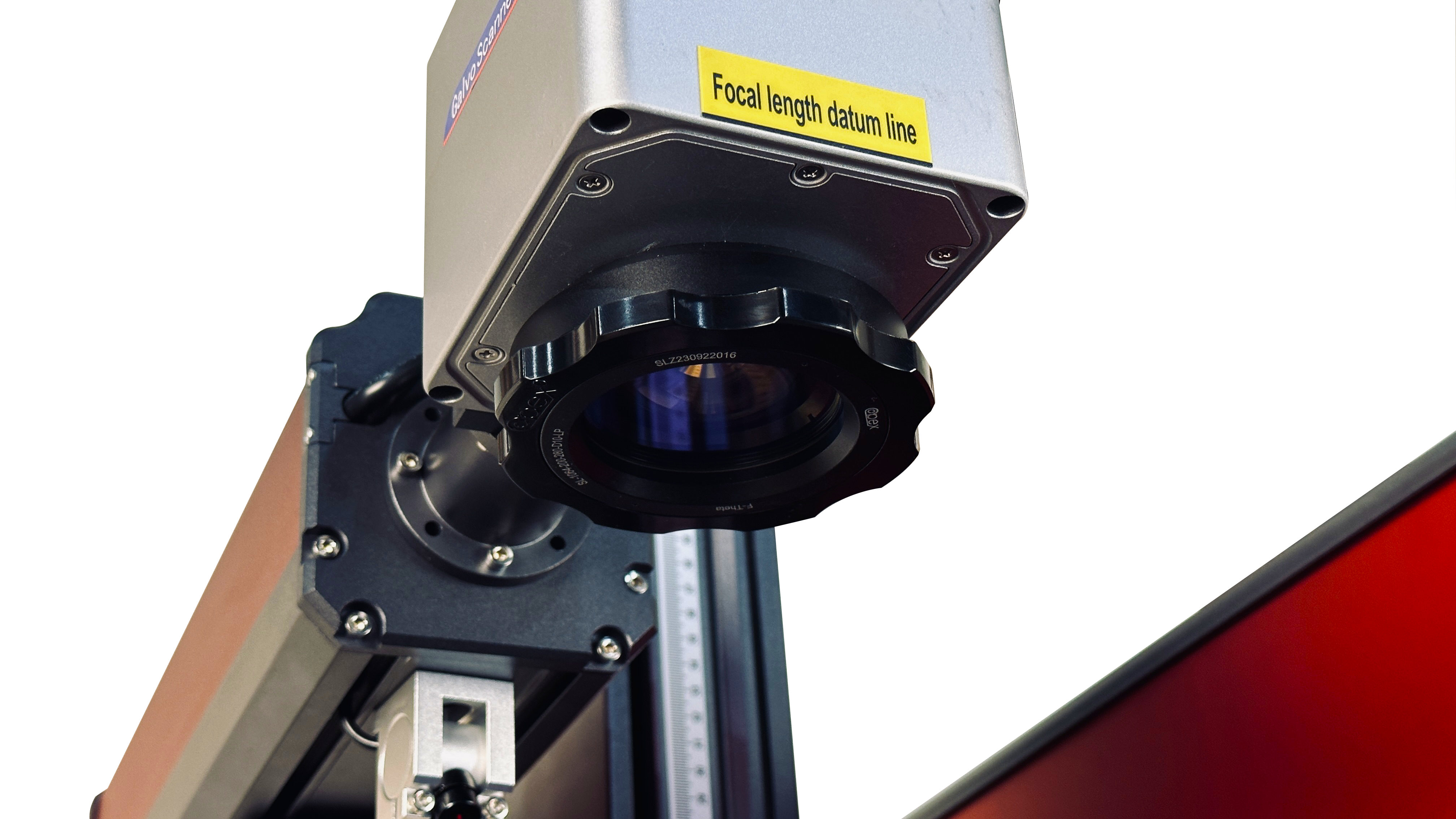 Сканатор – лазерного маркера, доработан и в нижнюю часть вмонтированы два лазерные указателя позиционирования, визуального определения точки схождения (точки фокусировки), что упрощает настройку фокусного расстояния.