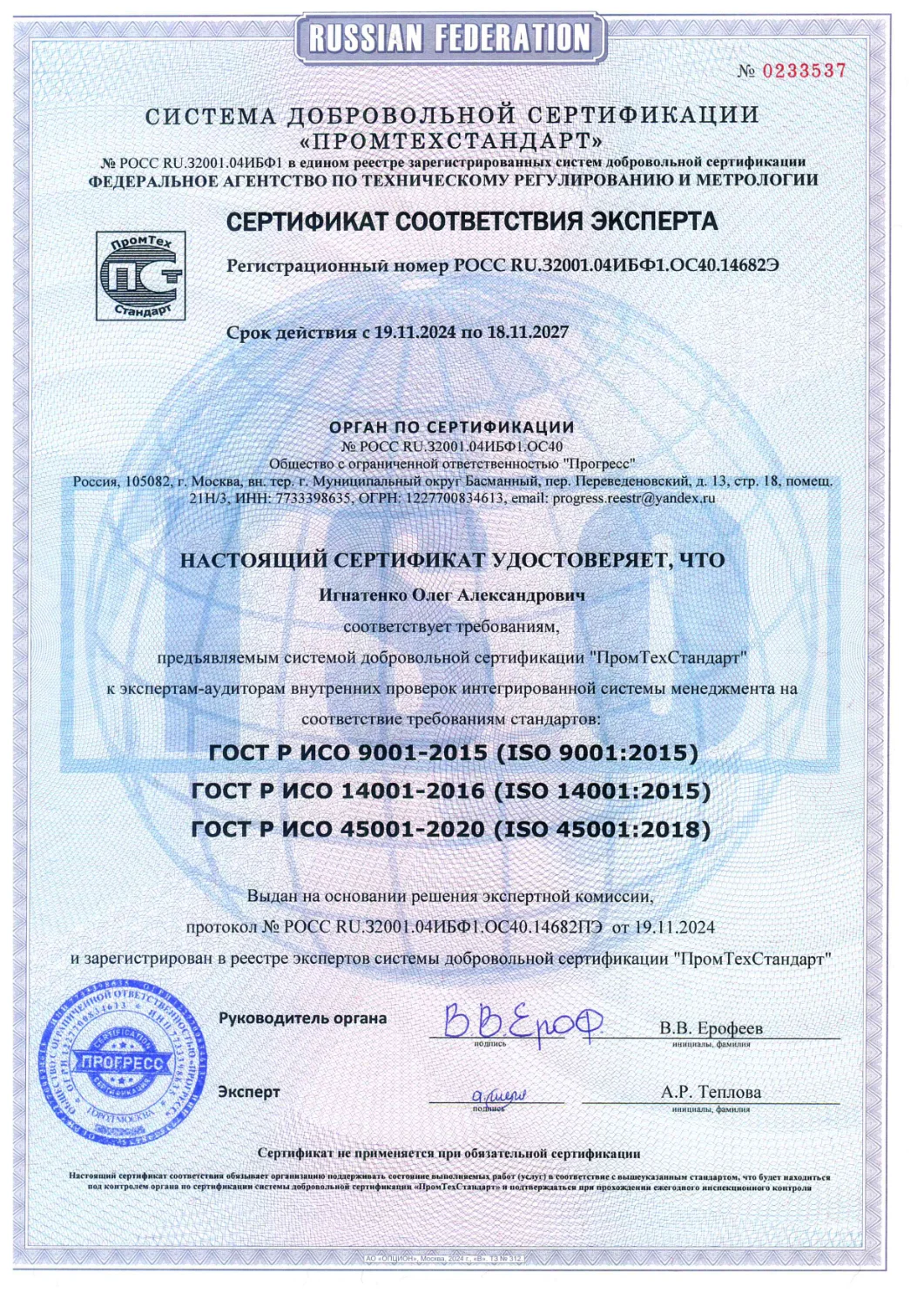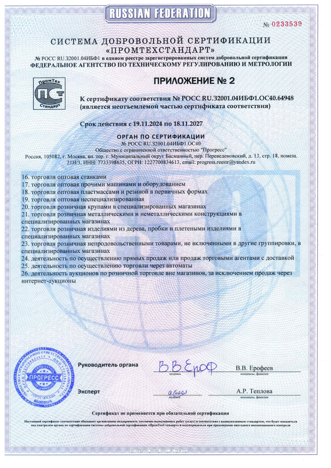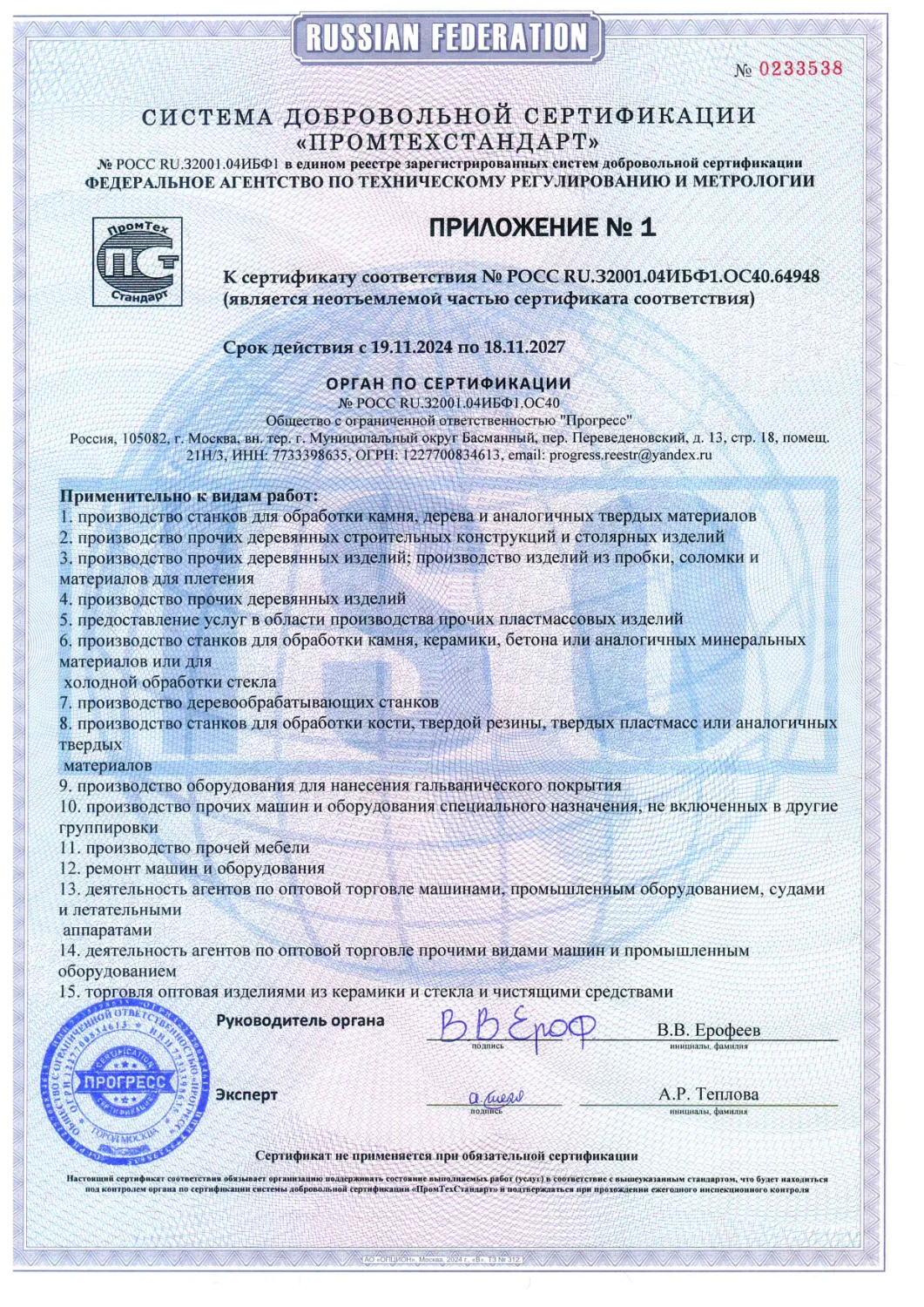 Приложение Nº 1 к сертификату соответствия N º POCC RU.32001.04ИБФ1.ОC40.64948 (является неотьемлемой частью сертификата соответствия)